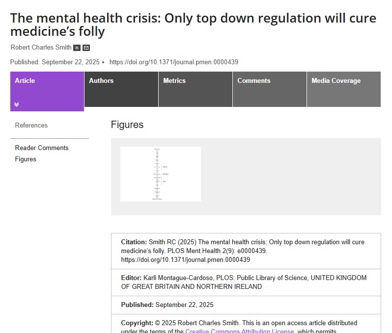 SMITH RC: (Op-Ed) The Mental Health Crisis: Only Top Down Regulation Will Cure Medicine’s Folly